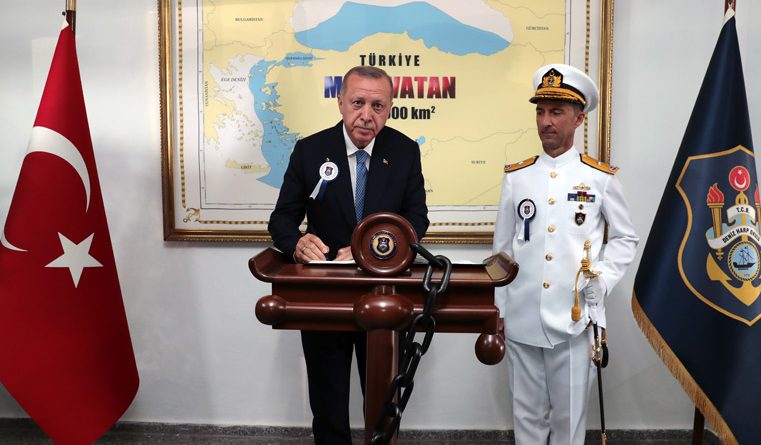 Κατά τη διάρκεια της τελετής της ορκωμοσίας στο Πανεπιστήμιο Εθνικής Άμυνας της Τουρκίας, φωτογραφίστηκε με απίστευτη ΠΡΟΚΛΗΣΗ μπροστά από έναν χάρτη που γράφει «Γαλάζια Πατρίδα, έκταση 462.000 χιλιομέτρων».