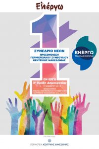 Πρόσκληση ενδιαφέροντος σε νέους και νέες από την Κεντρική Μακεδονία, ηλικίας από 18 έως 28 ετών, απευθύνει το Σωματείο «Εν Έργω», στο πλαίσιο του 1ου Συνεδρίου Προσομοίωσης Περιφερειακού Συμβουλίου «Εν Έργω» – 3η Πράξη Δημοκρατίας, που τελεί υπό την αιγίδα της Περιφέρειας Κεντρικής Μακεδονίας. Το συνέδριο θα διεξαχθεί από τις 15 έως τις 17 Νοεμβρίου 2019 στη Θεσσαλονίκη, στην αίθουσα συνεδριάσεων του Περιφερειακού Συμβουλίου Κεντρικής Μακεδονίας.