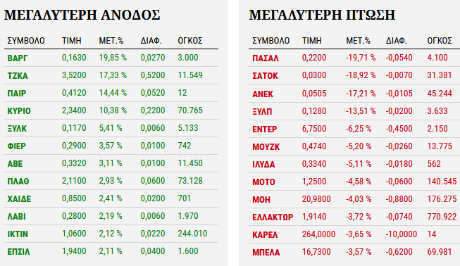 Σε αρνητικό έδαφος διαπραγματεύθηκε σήμερα από την έναρξη της συνεδρίασης ο γενικός δείκτης, με τις πιέσεις να αυξάνονται στο δεύτερο μισό αυτής και κυρίως την τελευταία ώρα, καταγράφοντας ενδοσυνεδριακό χαμηλό στις 860,98 μονάδες. Σημαντικές πιέσεις ασκήθηκαν κυρίως στις μετοχές της μεγάλης κεφαλαιοποίησης, και ειδικότερα σε αυτές των Ελλάκτωρα, Motor Oil, και ΜΠΕΛΑ, με αυτές των ΔΕΗ και Σαράντη να είναι οι μόνες οι οποίες κατάφεραν να κλείσουν με θετικό πρόσημο.