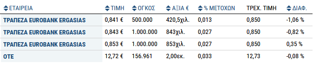 Τέλος στο τριήμερο ανοδικό σερί του τραπεζικού δείκτη, ο οποίος ολοκλήρωσε μεταξύ των κινητών μέσων όρων των πέντε και δέκα ημερών, με το σήμα αγοράς να παραμένει, και με τον όγκο να διαμορφώνεται στα 18,52 εκατ. τεμάχια έναντι 19,63 εκατ. τεμαχίων του μέσου όρου των τριάντα ημερών, με την αντίσταση να βρίσκεται στις 821 μονάδες, και η στήριξη στις 653 μονάδες.