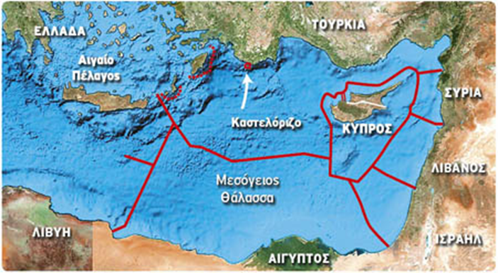 Κλειδί στην οριοθέτηση της ελληνικής ΑΟΖ είναι το Καστελόριζο, νησί το οποίο κατοικείται και, κατά συνέπεια, κανείς δεν μπορεί να αμφισβητήσει ότι διαθέτει Αποκλειστικής Οικονομική Ζώνη. Με βάση την αρχή της μέσης γραμμής, το σύμπλεγμα του Καστελόριζου εξασφαλίζει την επαφή της ελληνικής με την κυπριακή ΑΟΖ. Στον παρακάτω χάρτη φαίνεται η αξία του Καστελόριζου.